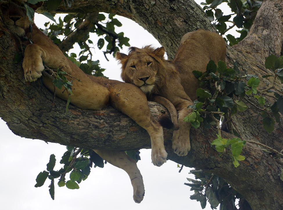 Ishasha tree climbing lions