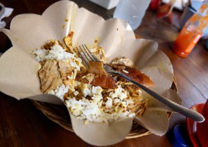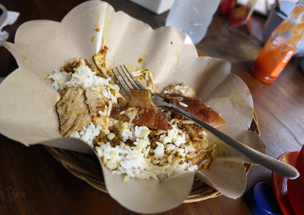 A traditional lunch of pork. Ibu Oka, Ubud.